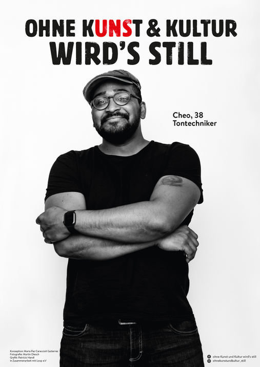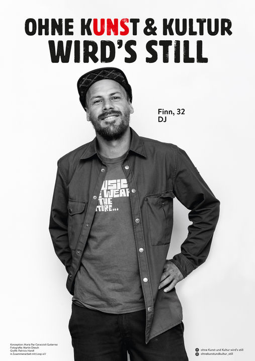 Ohne Kunst und Kultur wird‘s still. Ein Claim, ein Slogan – eine Botschaft, über die das ganze Land spricht. Die Plakate kennen Menschen in Lübeck, Hamburg, Stuttgart oder Wien. Der markante Schriftzug ist binnen weniger Monate zu einem Symbol geworden. Auf Hoodies, Shirts und sogar Masken gedruckt, wird es von unzähligen Unterstützern als Zeichen der Solidarität mit der unter der Corona-Pandemie besonders leidenden Kunst- und Kulturbranche in alle Welt getragen. Hinter der beispiellos erfolgreichen Kampagne steht ein kreatives Paar aus Schleswig-Holstein: Maria Paz Caraccioli Gutierrez und Martin Diesch.